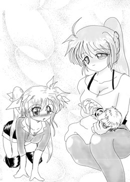 にやにやしながらエイミィさん。真っ赤になったシグナムさんを背中から覗き込んでる。